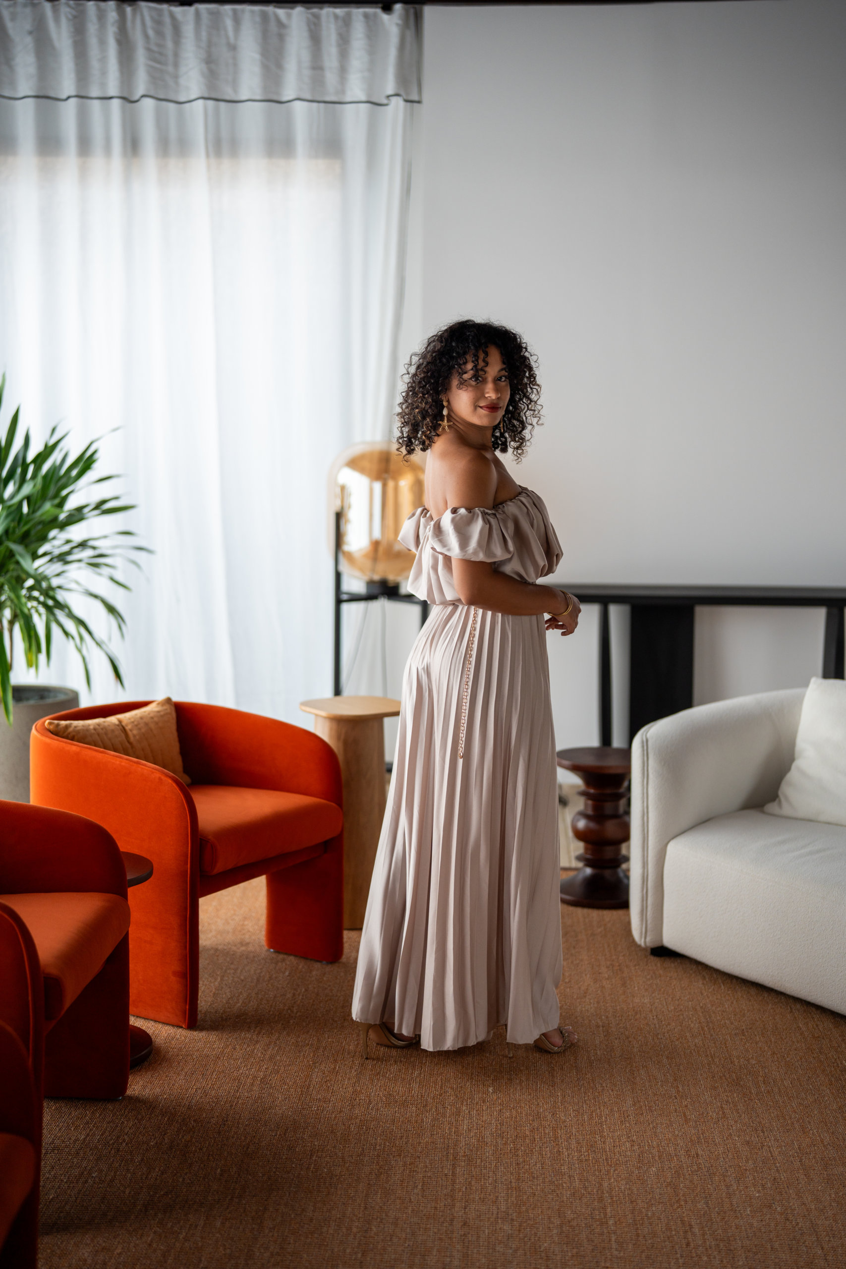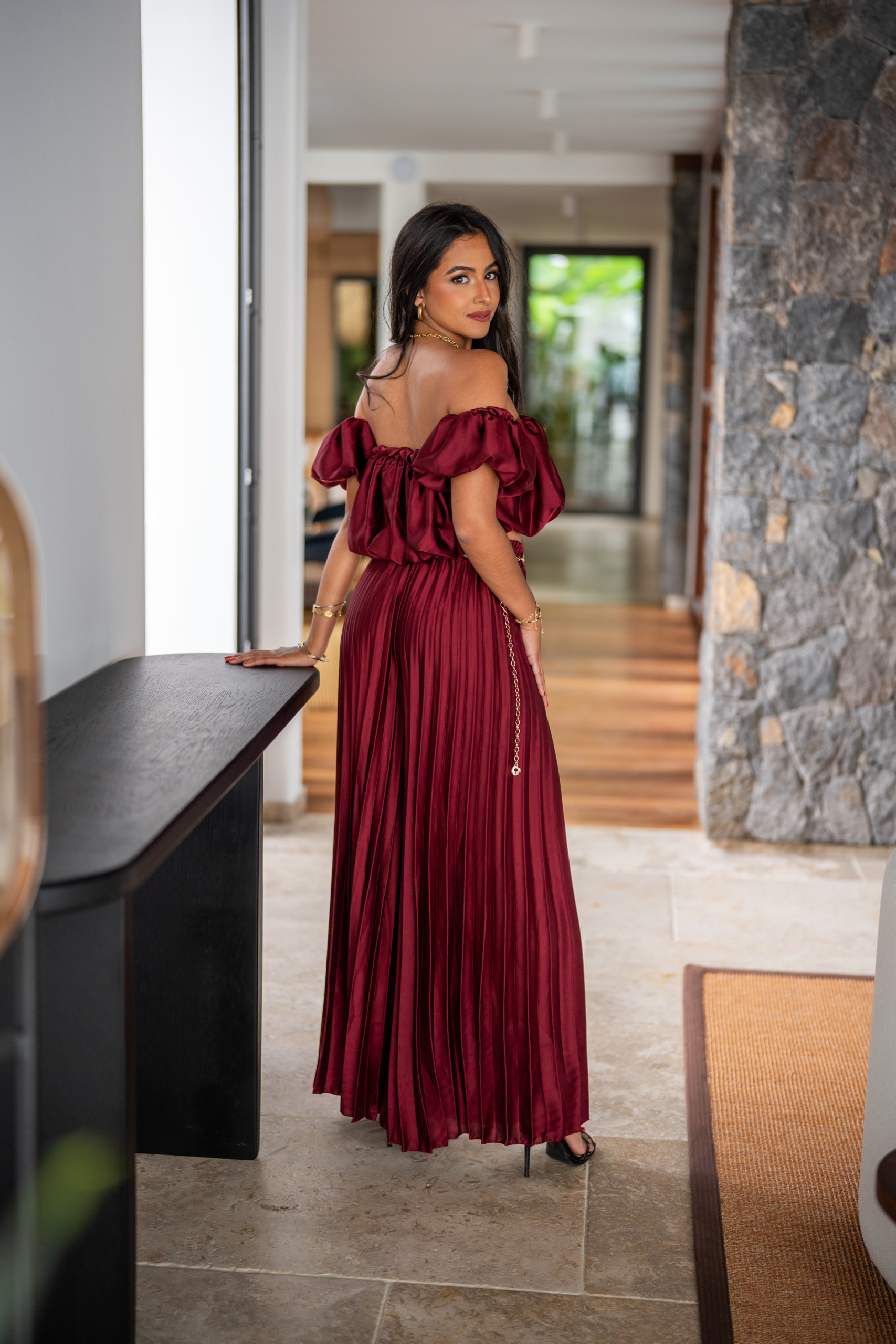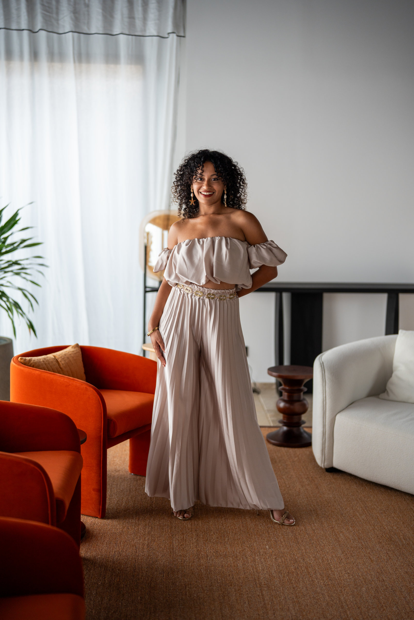 Ensemble pantalon satiné avec son crop top effet volant et son pantalon plissé.
