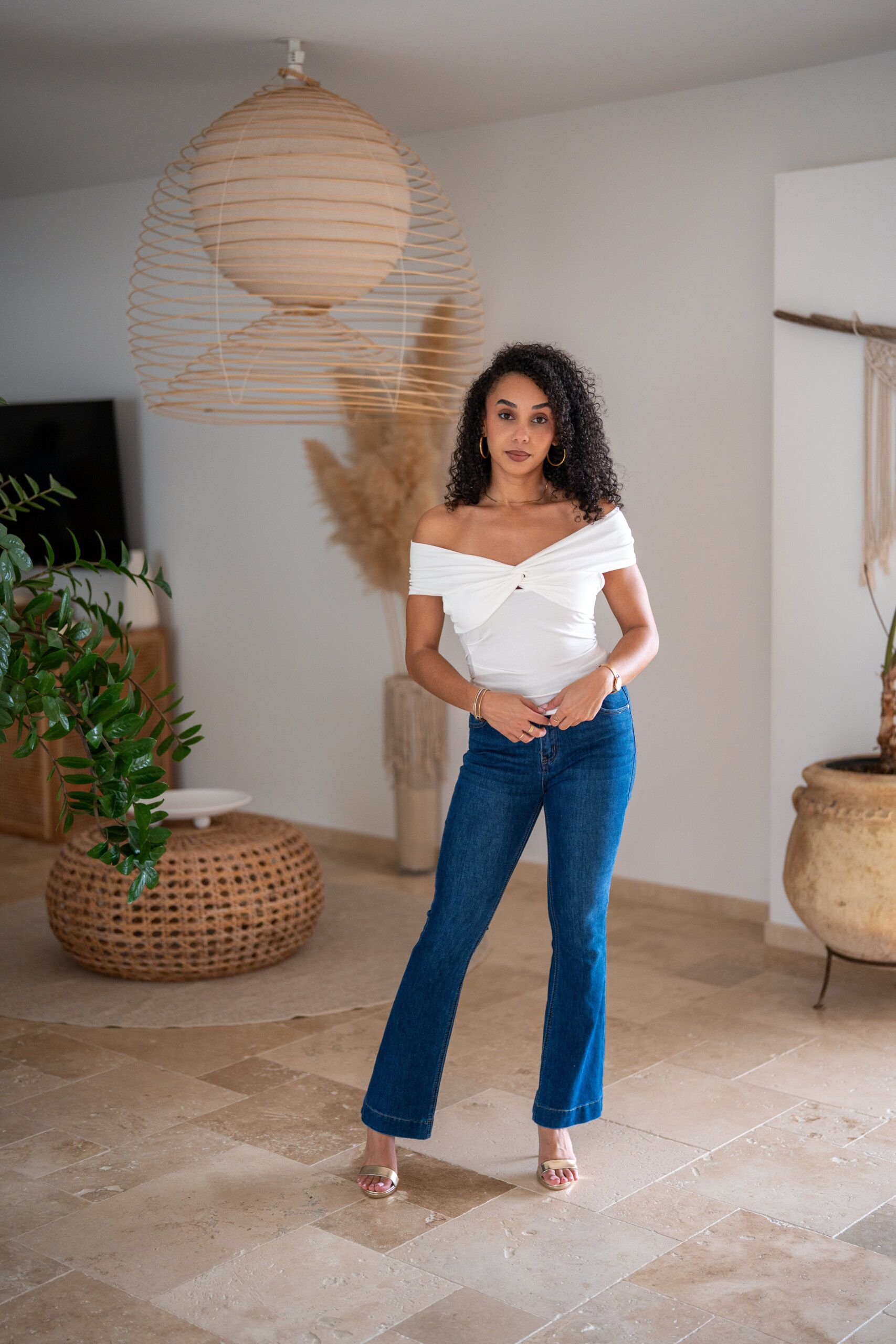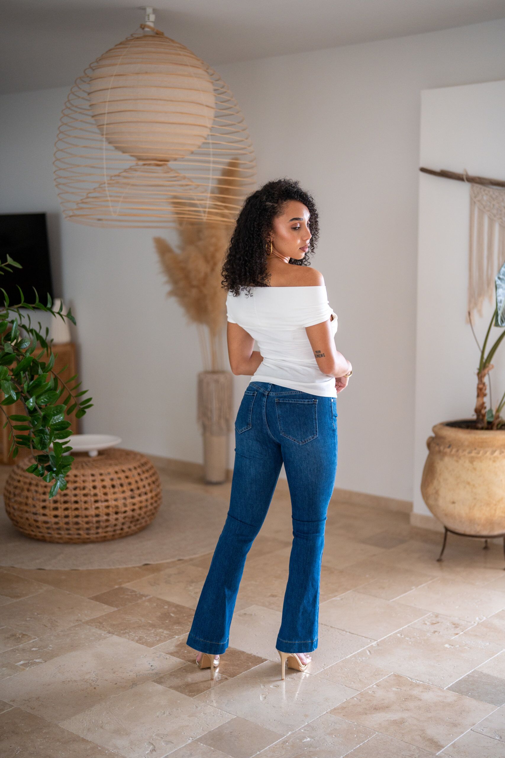 Jeans couleur brut dans une coupe tendance “flare”.