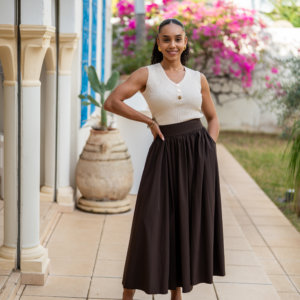Jupe longue imprimée “tye & dye” dans une matière fluide et légère.
