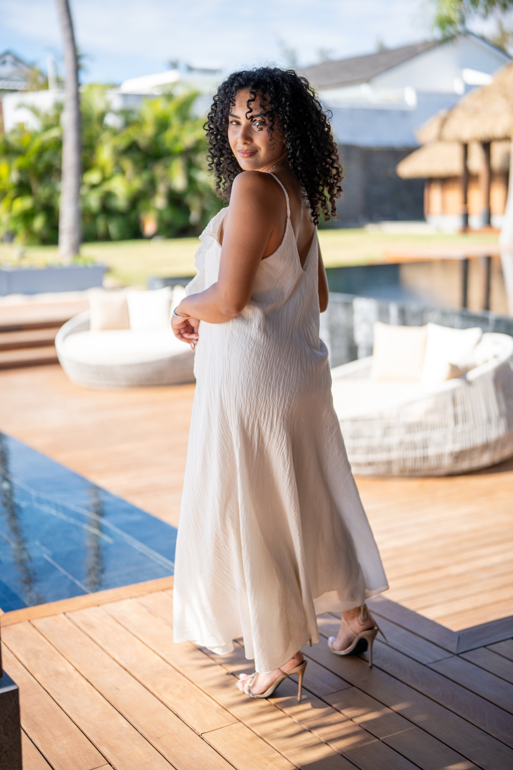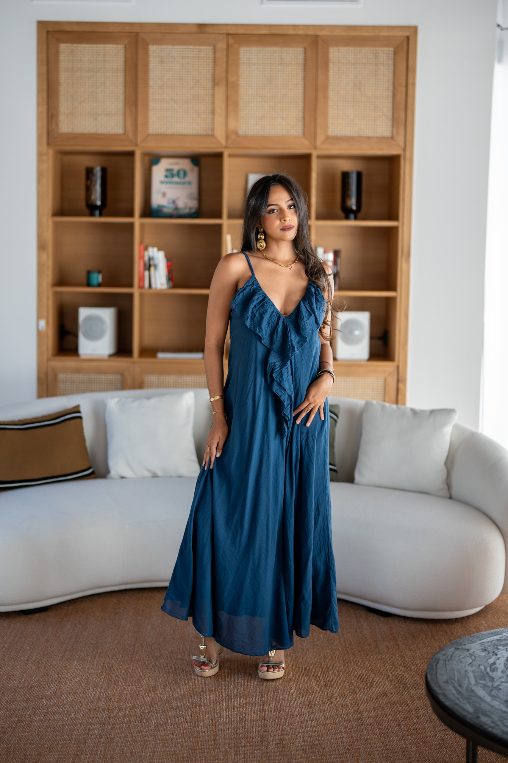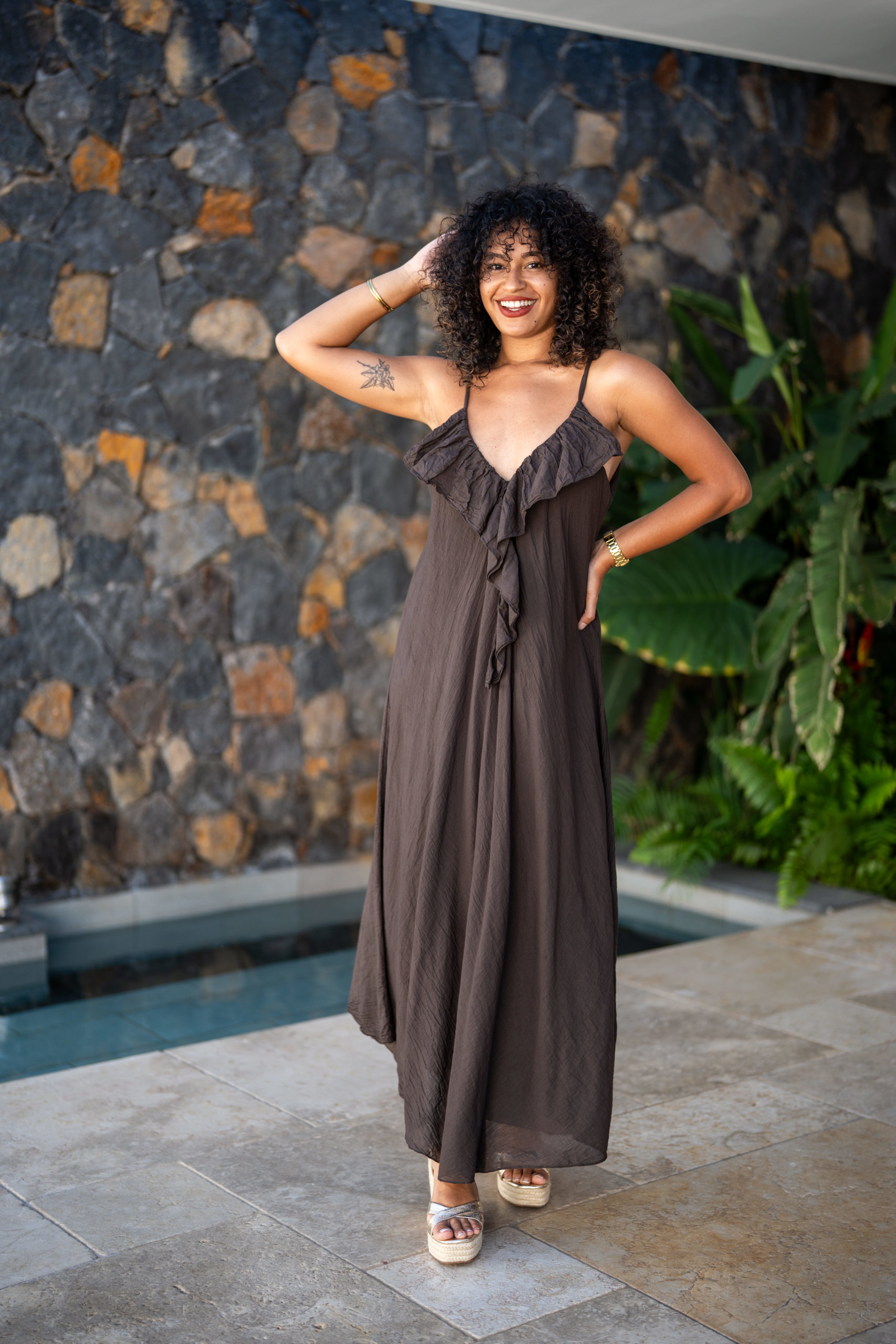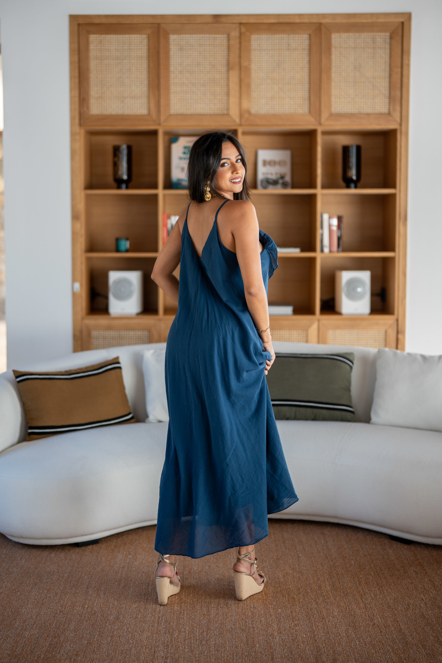 Robe longue à bretelles, légère et agréable à porter en été dans une matière en voile de coton; Elle est doublée.