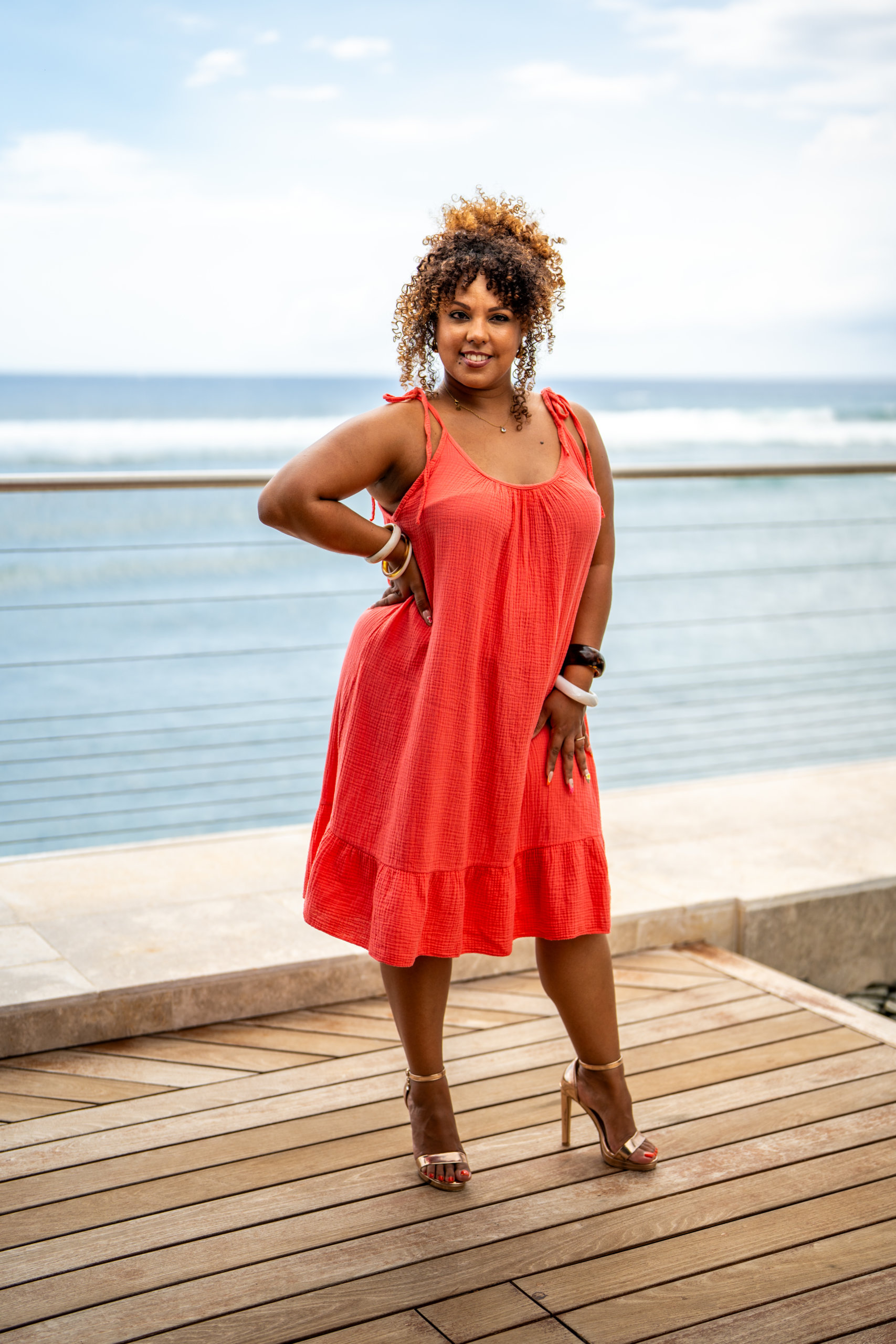 Robe courte unie à bretelles noeuds réglables. Dans une matière en gaze de coton, elle est agréable et légère à porter.