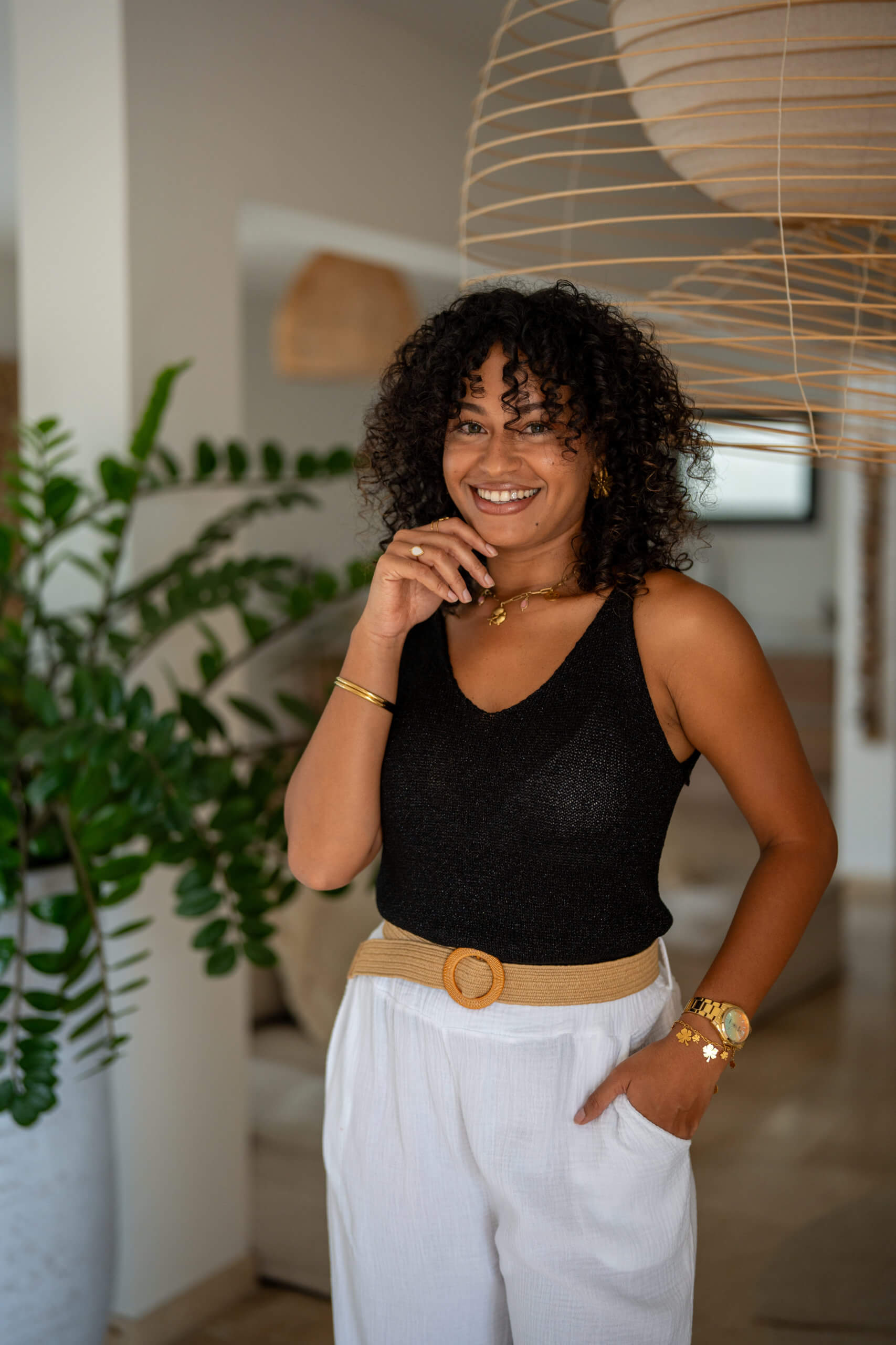 Top brillant en maille.