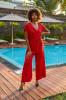 Combinaison pantalon à manches courtes avec un style bas large. Elle a une attache au dos ainsi qu'une ceinture bijoux en corde.