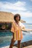 Combinaison short imprimée "collection aztèque", élastiquée à la taille avec son col en V et ses manches mi longue. Dans une matière en gaze de coton, elle est agréable et légère à porter.