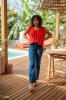 Jeans style bas large avec ses poches tressés à l'avant.