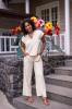 Pantalon fluide uni dans une matière chic et habillée. C'est un pantalon pincé au niveau des poches, avec son bas large.