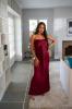 Robe longue satinée bustier dans une coupe élégante et moulante. Elle a un tissu tombant à l'avant.