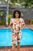 Robe courte imprimée, à manches courtes avec son V à l'avant.