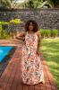 Robe longue sans manches, élasthanne au niveau du col à l'avant et à l'arrière. Elle a des liserais dorés.