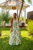 Robe longue sans manches, élasthanne au niveau du col à l'avant et à l'arrière. Elle a des liserais dorés.