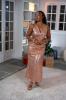 Robe longue sans manches à sequins brillants dorés. Elle a une fente dans le bas et un col en V, moulante et élégante à porter. La robe est disponible en grande taille également.